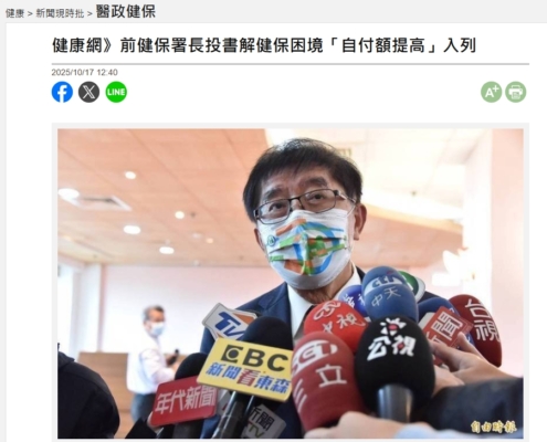 【媒體報導】《自由健康網》前健保署長投書解健保困境「自付額提高」入列
